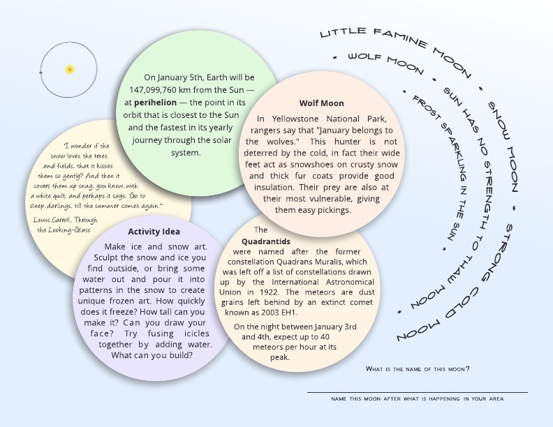 This is a FREE addendum to A Moon Calendar and Seasonal Companion 2020. The calendar starts with the first moon cycle that contains the spring equinox, but if you want your calendar to start in January-ish, download the